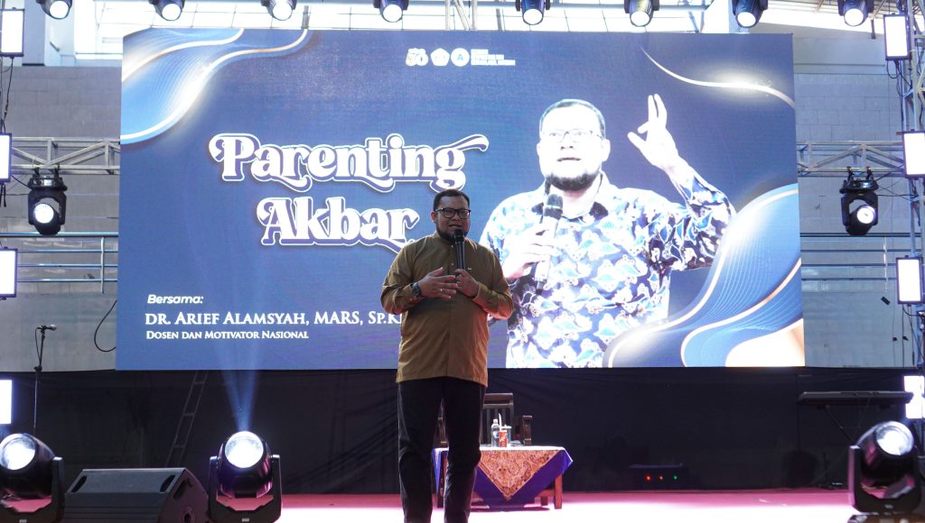 Selanjutnya, acara dilanjutkan dengan Parenting Akbar berupa seminar yang menghadirkan dr. Arief Alamsyah, MARS, Dipl. FM sebagai narasumber. Sesi ini memberikan wawasan penting bagi para orang tua dan pendidik tentang peran keluarga dalam mendukung tumbuh kembang dan pendidikan anak di era modern.